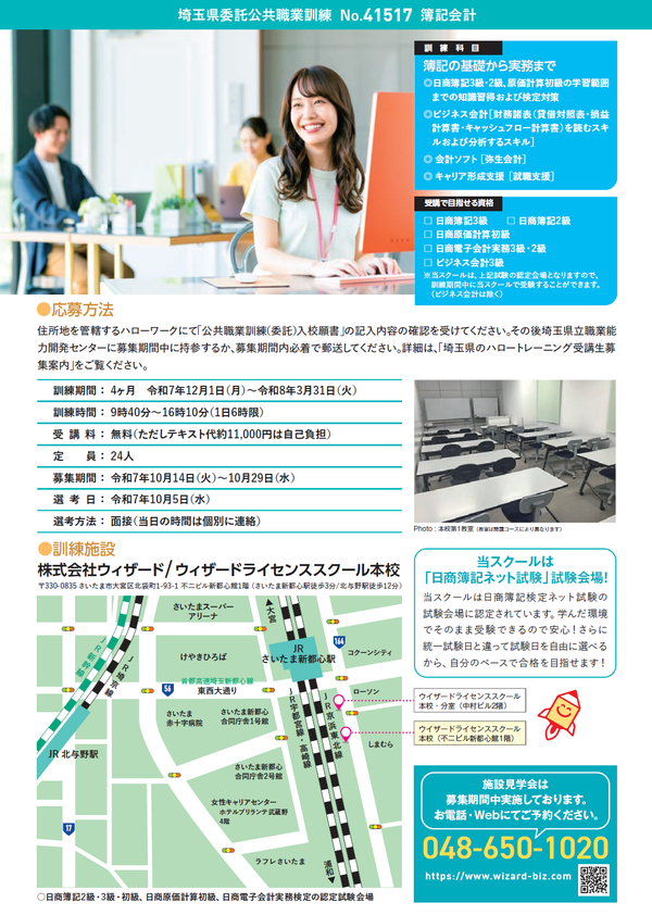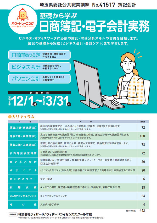 埼玉県公共職業訓練 簿記会計コース(12月開講)