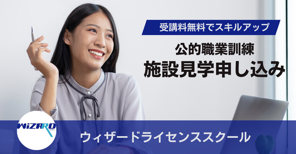ウィザードライセンススクールで開講する職業訓練の施設見学を実施しています。希望するコースをご確認の上、予約サイトから必要事項を入力してお申し込みください。